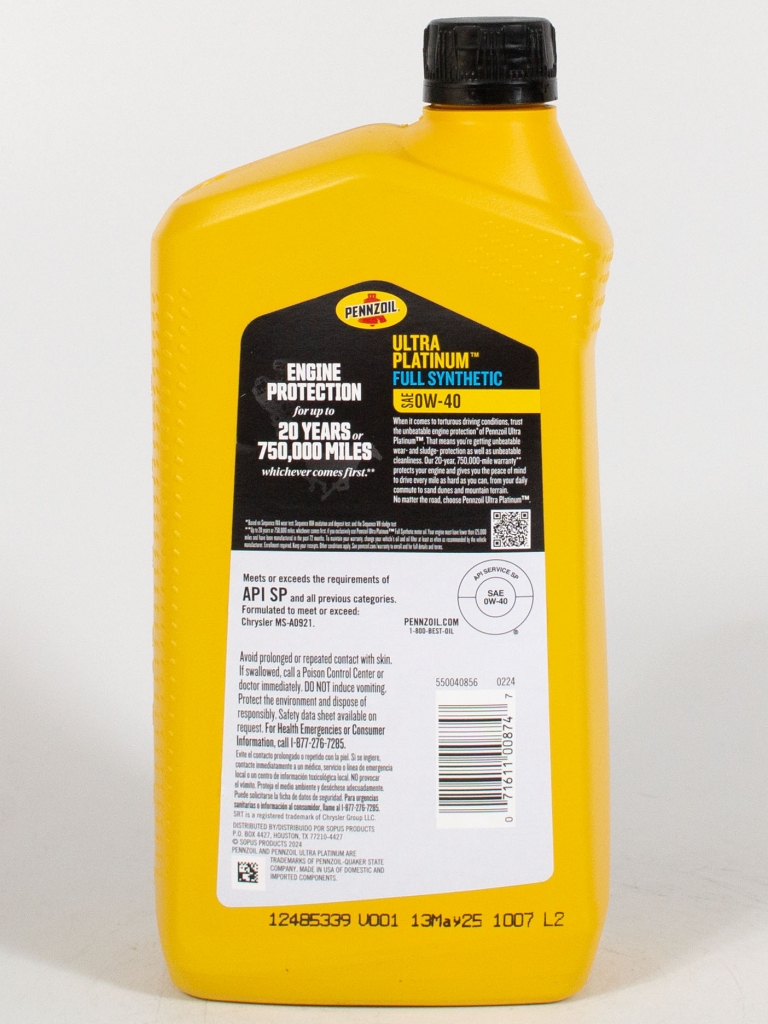 Pennzoil Ultra Platinum Full Synthetic 0W-40: