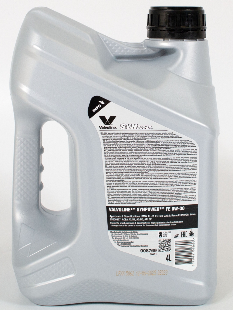 Главная / Моторные масла / Моторное масло Valvoline SYNPOWER FE 0W-30, 4л